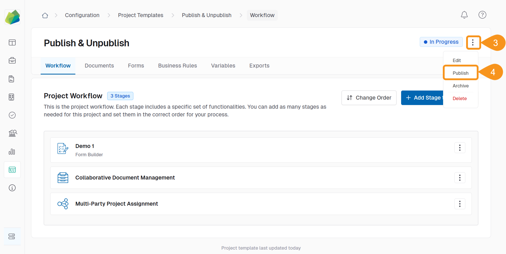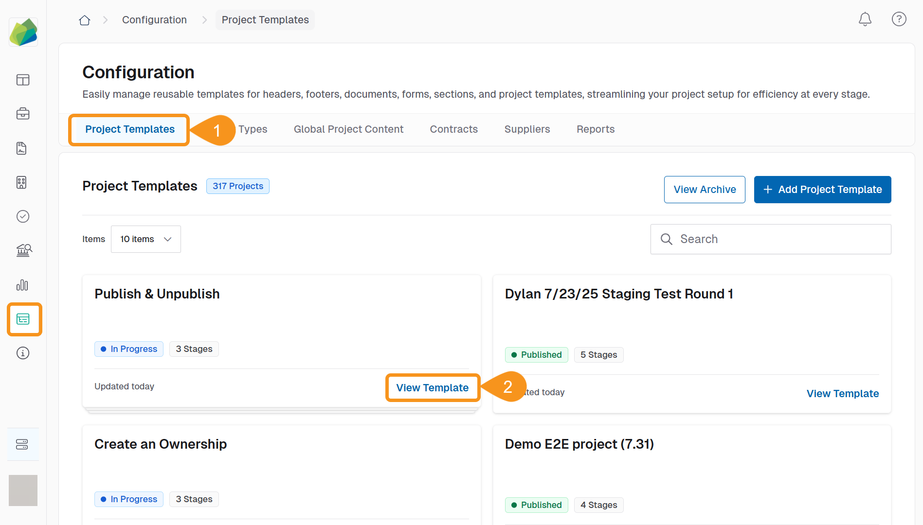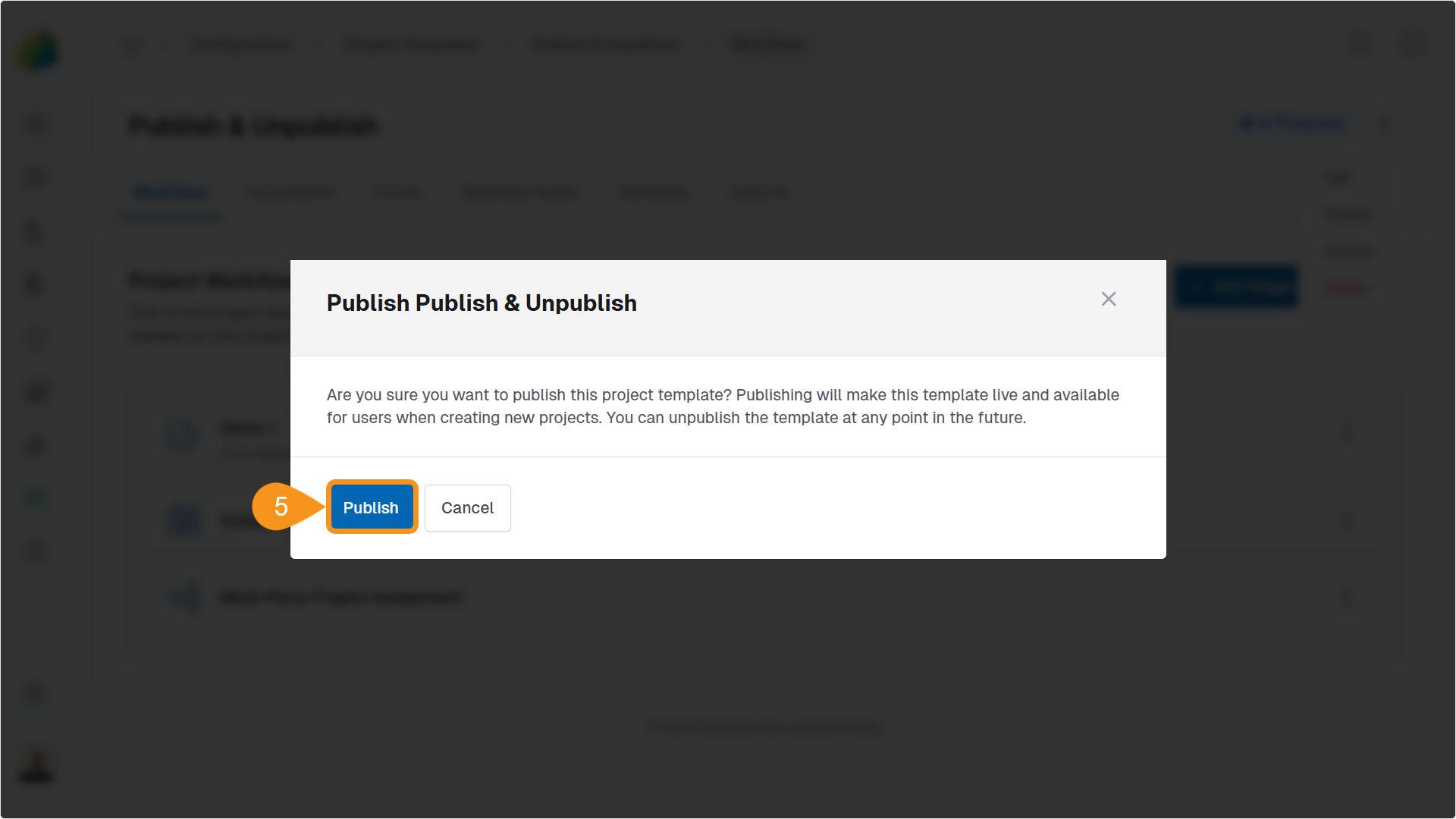 This how-to guide explains how to publish a Project Template in Authorium. Publishing a template makes it available for users to start new projects based on its structure and configuration.