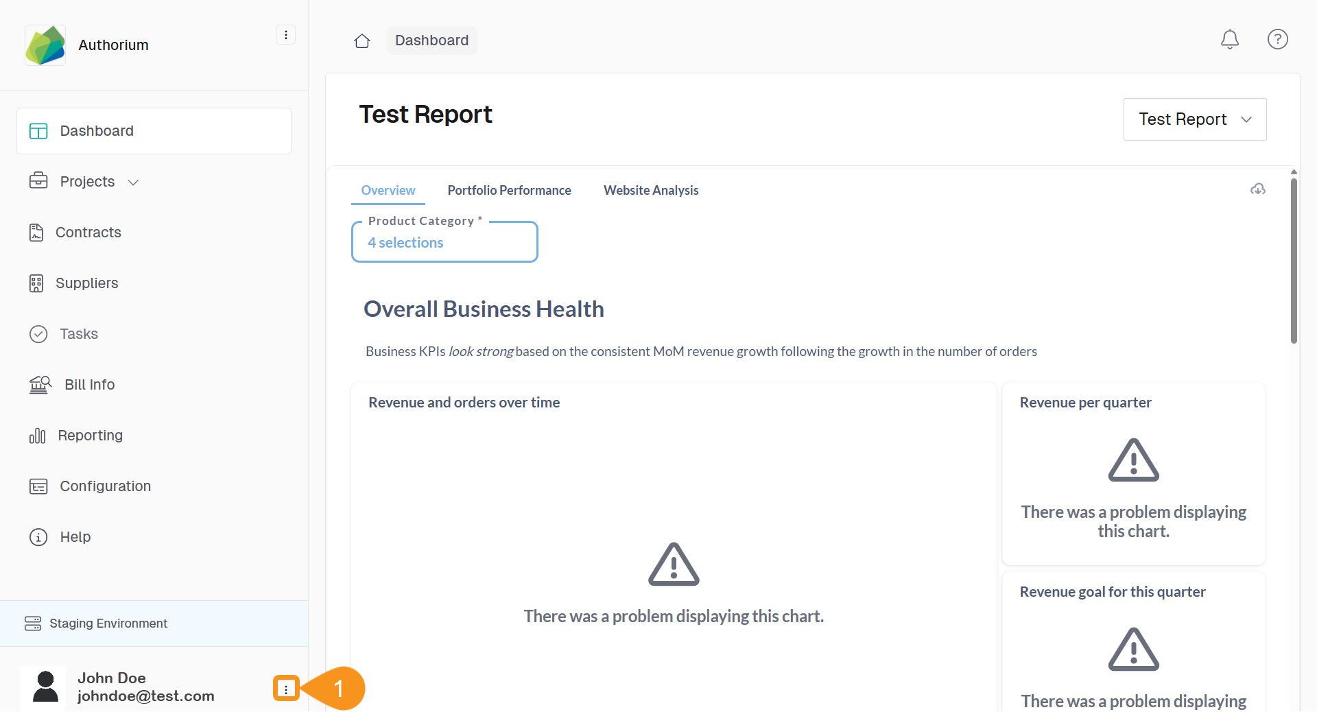 - From the Dashboard, click the three-dots menu next to your name and email in the navigation bar.