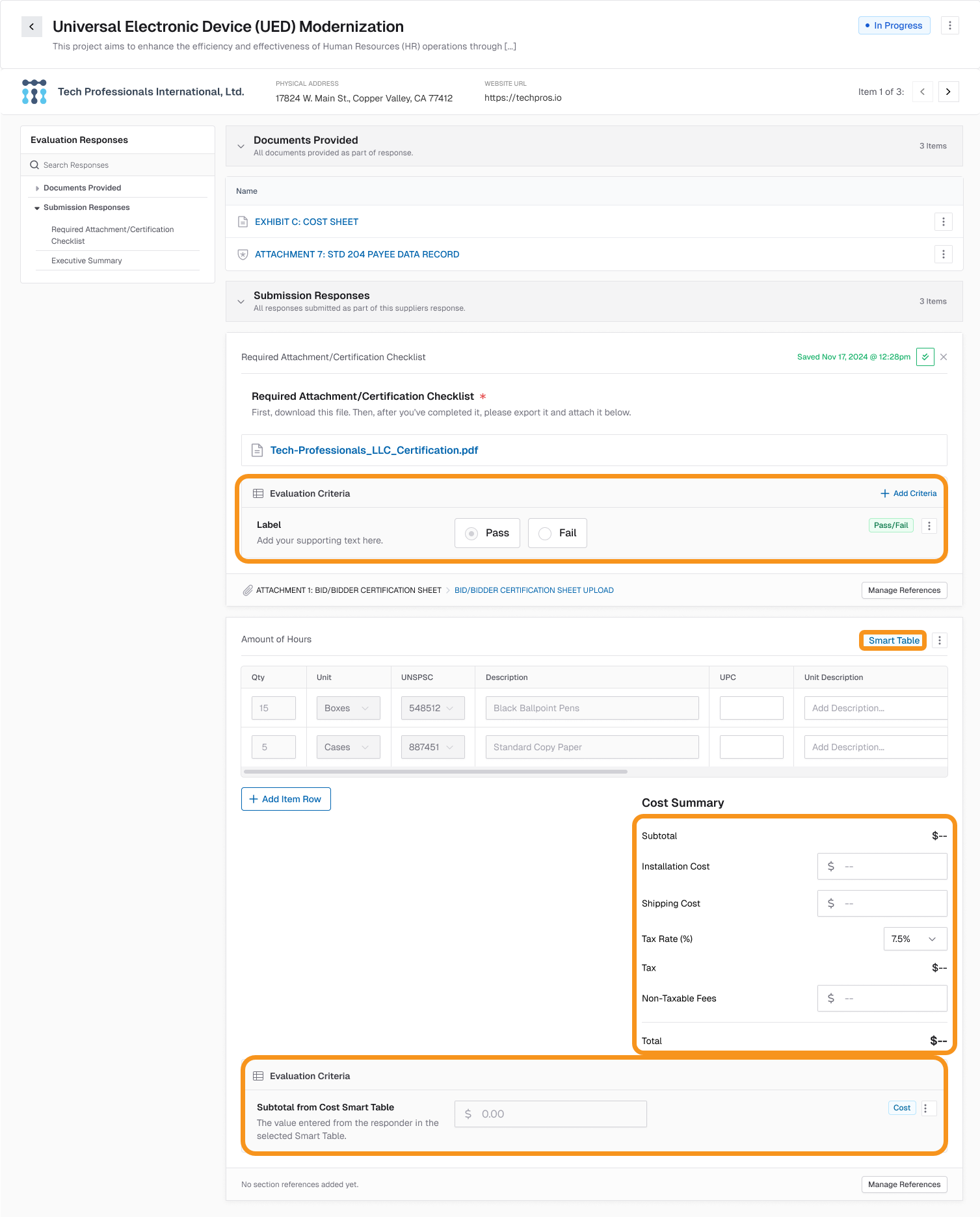 Reduce manual entry and keep evaluations accurate by pulling data straight from your Deliverables smart tables. You can now reference single-row table values directly in Evaluation Criteria, ensuring that scoring stays consistent and error-free.