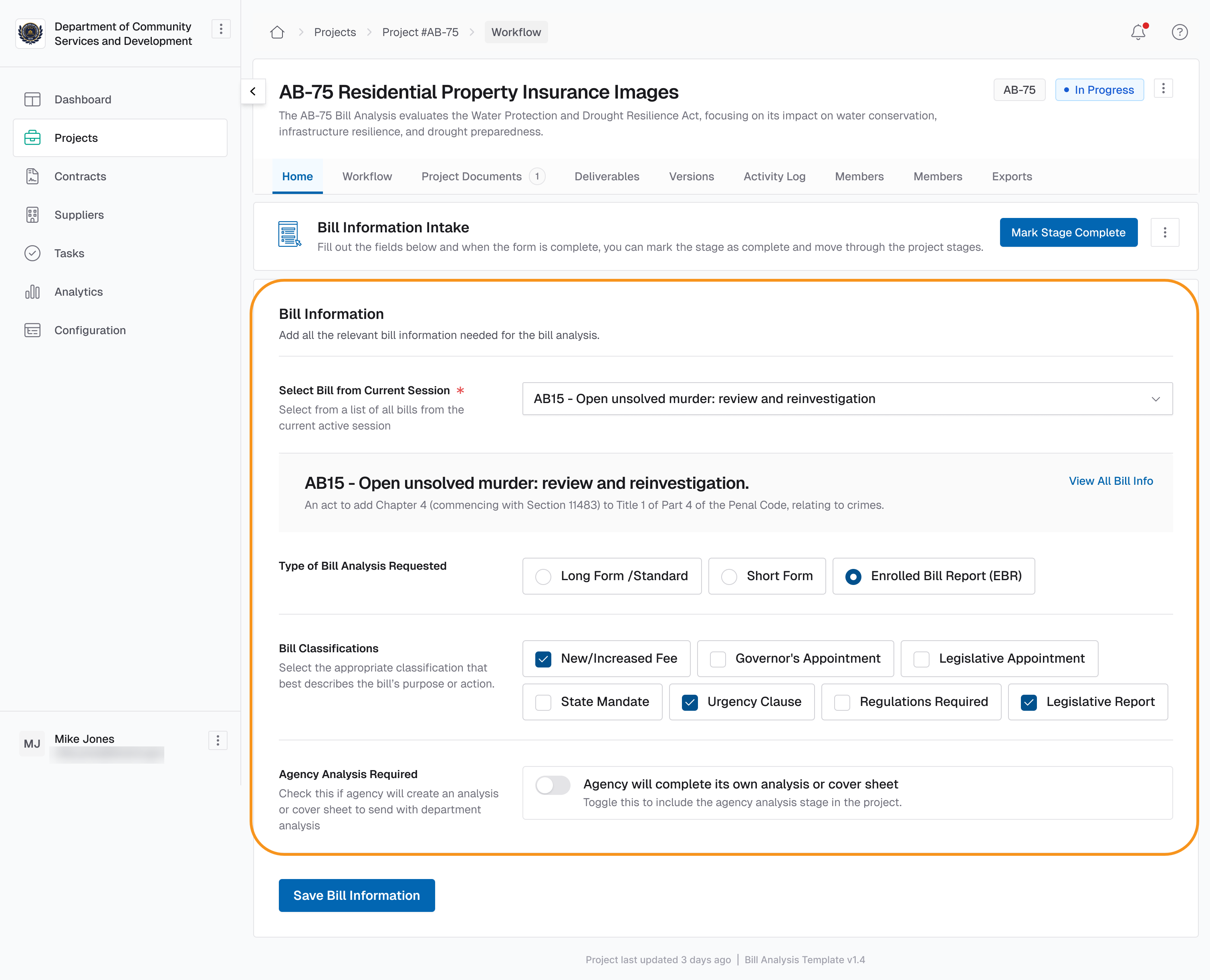 Start bill analysis projects faster with integrated bill selection and automatic data population. You can now search for a bill, preview its details, and add its information—along with a full read-only version of the bill—directly to your project, eliminating manual setup.